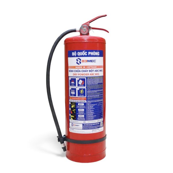 Bình chữa cháy 83Mec bột ABC 8kg giúp dập tắt hiệu quả các đám cháy loại A, B, C chính hãng 83Mec được sản xuất tại Việt Nam đảm bảo chất lượng cùng tem kiểm định PCCC rõ ràng mang lại sự an tâm cho người sử dụng trong mọi tình huống khẩn cấp.