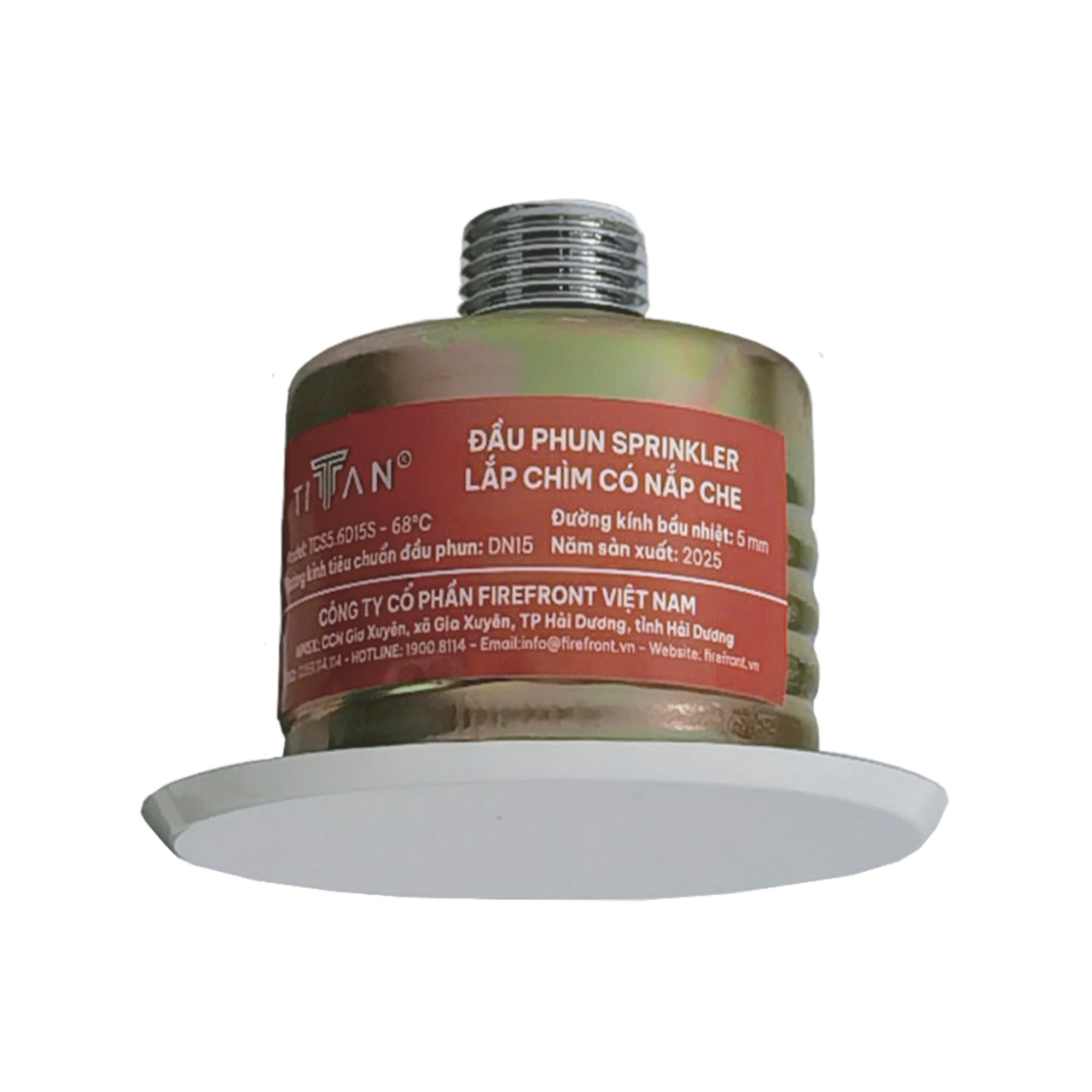 Đầu phun chữa cháy sprinkler Titan lắp chìm âm trần có nắp che được thiết kế đặc biệt để gắn âm trần giúp giữ nguyên tính thẩm mỹ cho các không gian như văn phòng, khách sạn, trung tâm thương mại. Sản phẩm đi kèm nắp che sơn trắng tinh tế, tự động bung ra khi nhiệt độ vượt quá ngưỡng giới hạn. Đây là lựa chọn hoàn hảo cho các công trình yêu cầu cao về mỹ quan nhưng vẫn phải đảm bảo tiêu chuẩn PCCC nghiêm ngặt.